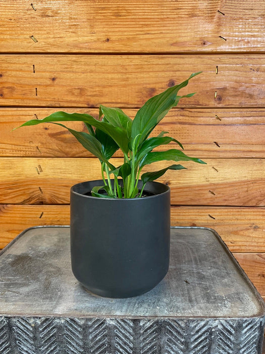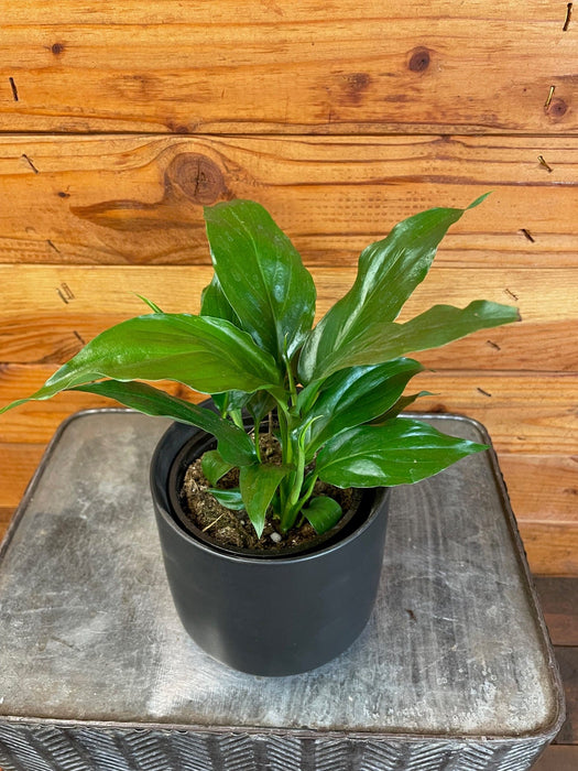 Spathiphyllum Romeo is a type of peace lily. Peace lillies are great houseplants because they adapt to various light conditions including low light. This one's flowers are pollen-free!